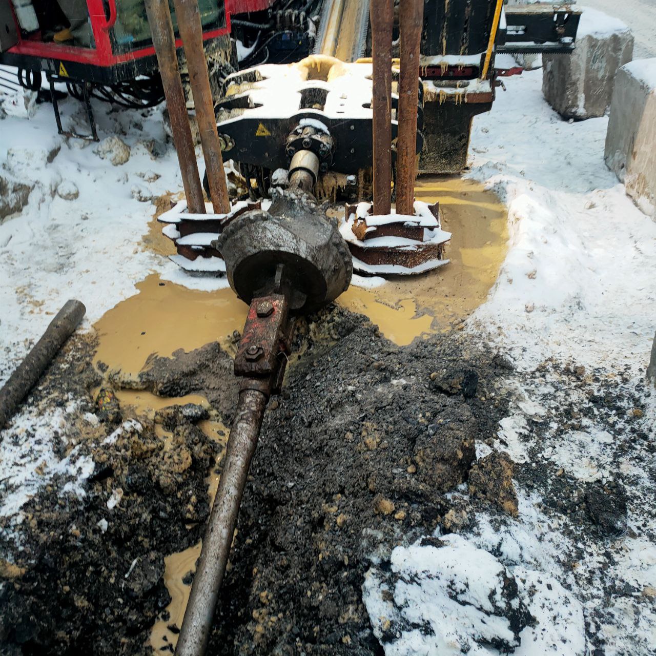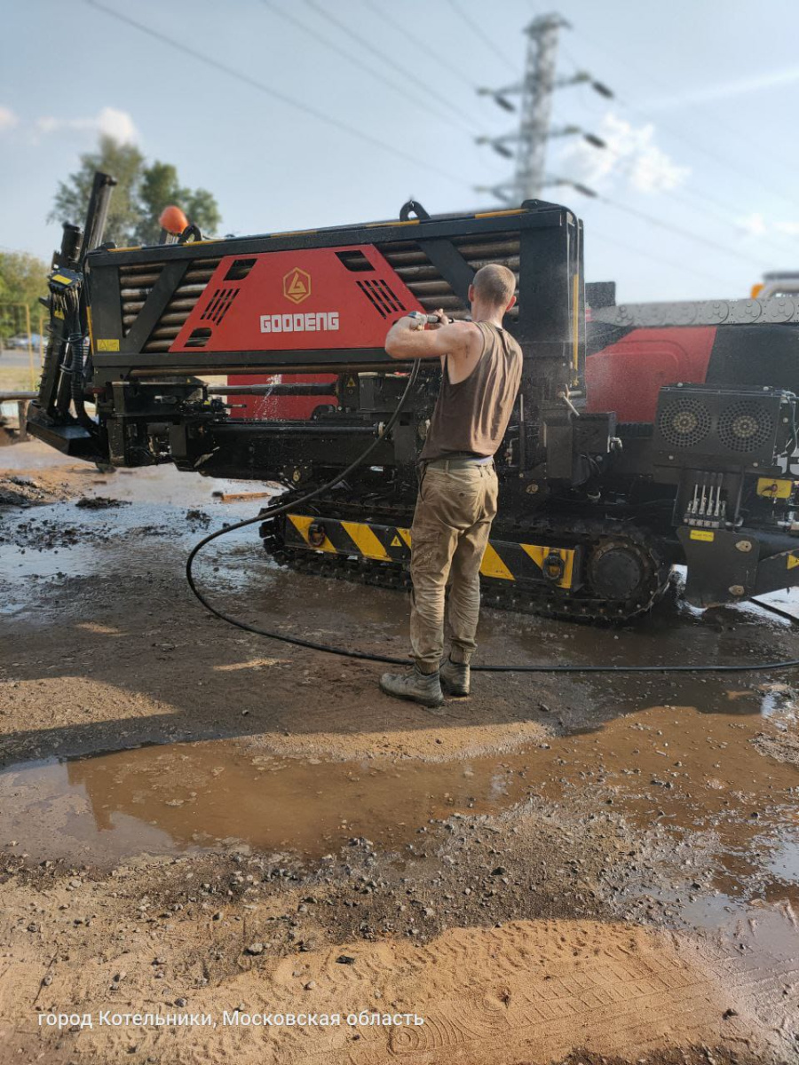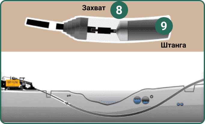 Поэтапно, извлекая штанги из скважины, протащить трубу в подготовленный буровой канал. Излишки бентонитовой смеси также откачиваются илососными машинами.